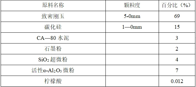 自20世紀(jì)70年代開(kāi)始研制Al2O3—SiC—C質(zhì)澆注料,隨著不定形耐火材料技術(shù)進(jìn)步,開(kāi)發(fā)了粘土結(jié)合、鋁酸鈣水泥結(jié)合、硅溶膠結(jié)合、ρ-Al2O3結(jié)合、磷酸二氫鋁結(jié)合等Al2O3—SiC—C質(zhì)澆注料。加上施工及維修等的技術(shù)進(jìn)步,又開(kāi)發(fā)了免烘烤澆注料、快干型澆注料、自流型澆注料、環(huán)保型澆注料等。但始終都是屬于Al2O3—SiC—C質(zhì)澆注料。代表性的配料見(jiàn)表1。