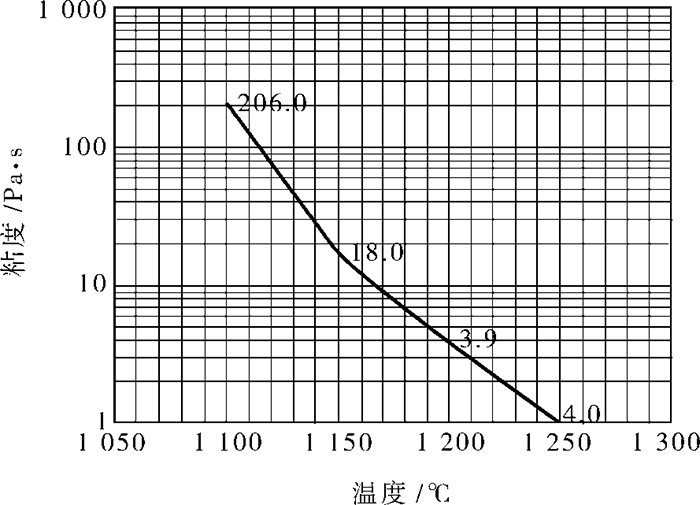 經(jīng)過試驗(yàn),向試驗(yàn)煤樣中加入當(dāng)?shù)厣衬械纳匙舆M(jìn)行堿酸比例的調(diào)整。通過試驗(yàn)可知,當(dāng)向試驗(yàn)煤樣中加入相當(dāng)于煤灰分40%的沙子時(shí),煤的粘溫特性得到了改善,灰熔點(diǎn)同時(shí)也得到了降低,粘溫特性如圖1。